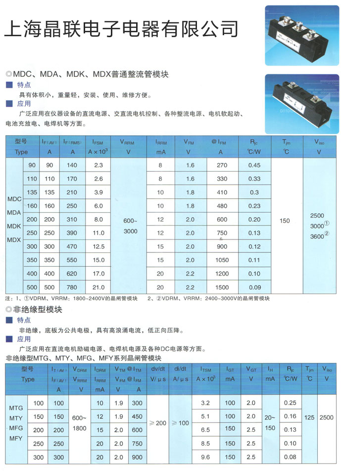 MDC、MDA、MDK、MDX普通整流管模块