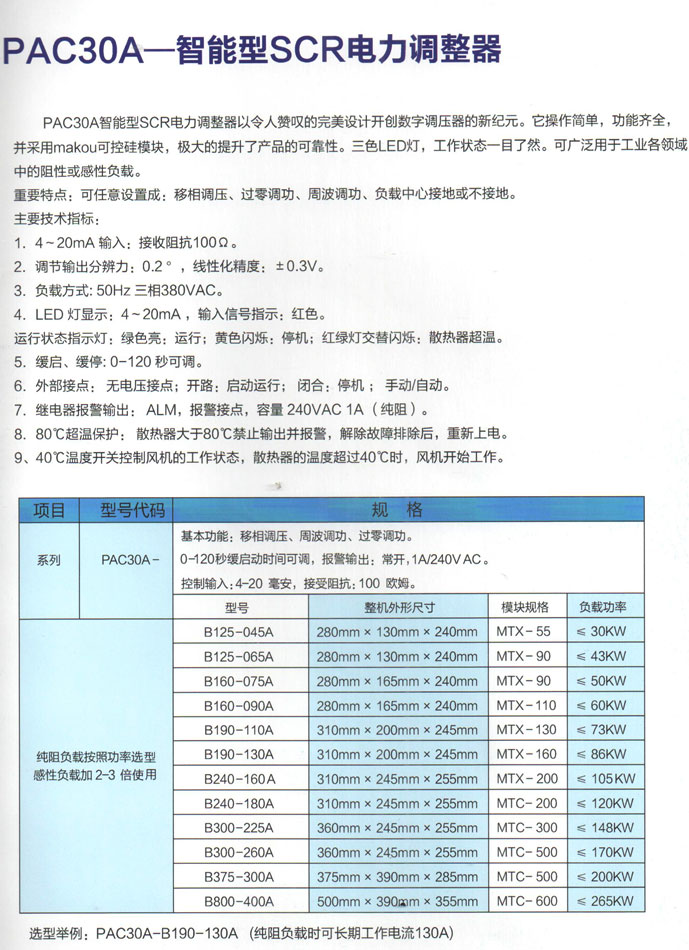 PAC30A-智能型SCR电力调整器