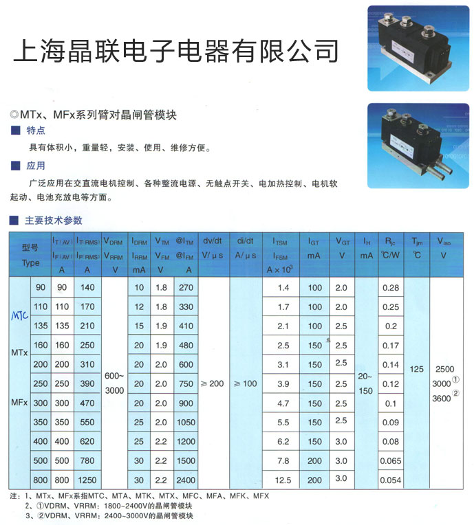 MTx、MFx系列臂对晶闸管模块